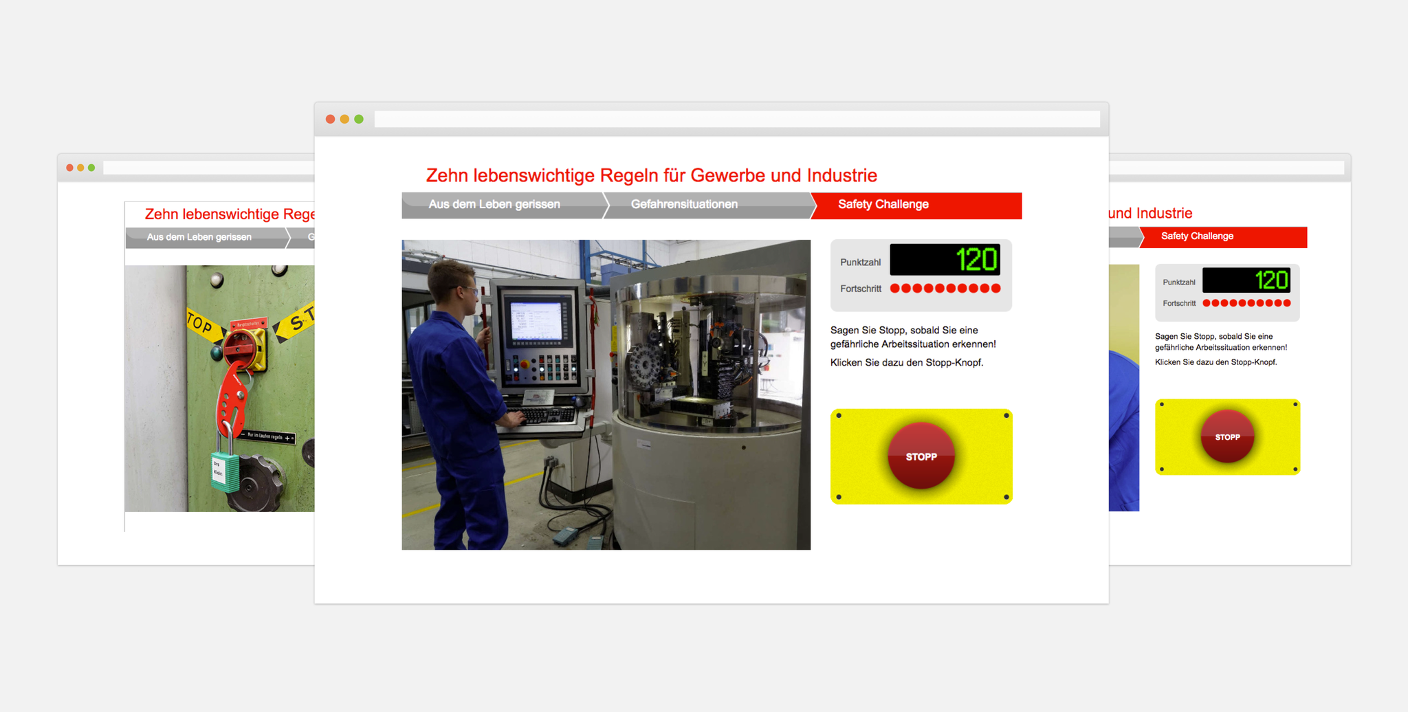 Die spielerische Safety Challenge zum Schluss stärkt den Praxistransfer: Auf einem virtuellen Rundgang durch den Betrieb wenden die Lernenden die erarbeiteten Regeln an und prüfen ihre eigene Kompetenz. Sie sind gefordert, «Stopp» zu sagen, sobald sie einen gravierenden Sicherheitsmangel feststellen und allfällige Sicherheitslücken zu korrigieren. Die Aussicht auf möglichst viele Challengepunkte spornt die Lernenden spielerisch an.